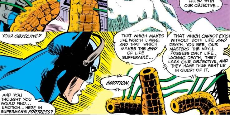 Em 1983, no gibi conhecido como O Modo de Morrer dos Kryll, Batman e Superman estavam deprimidos, participando de uma espécie de sessão de terapia com outros homens na Fortaleza da Solidão.A sessão é interrompida por um dos meteoros que o Superman intercepta periodicamente, e quando ele o leva para casa para um estudo mais aprofundado, os misteriosos vermes que estavam a bordo começam a drenar a aura dos super-heróis.